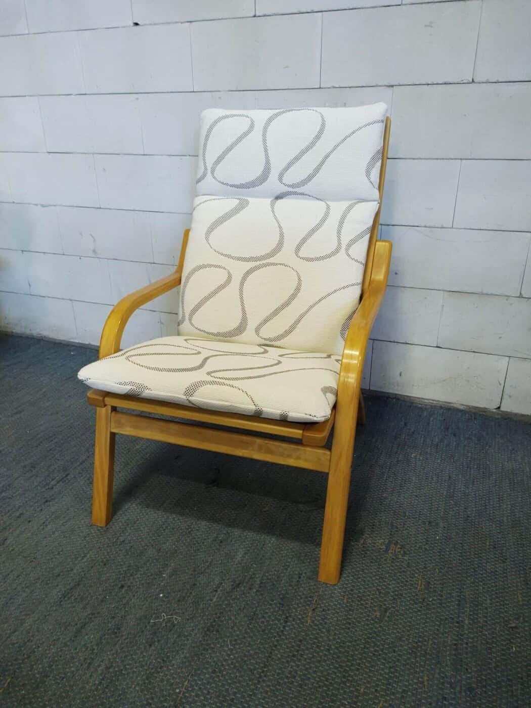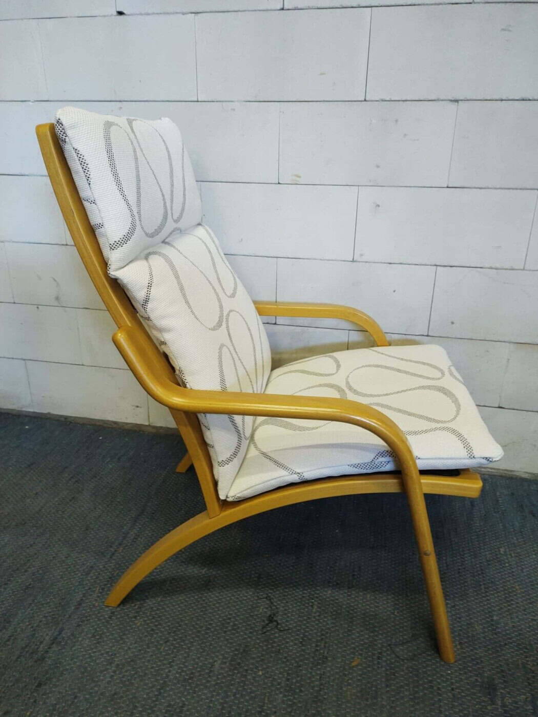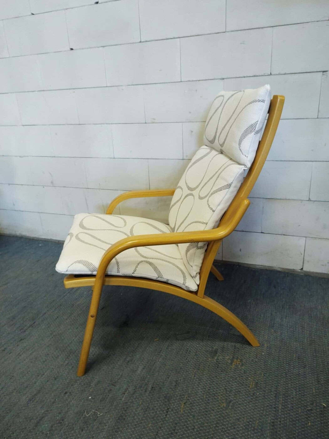 Armchair from Stouby, Denmark, 1970s. Bent beechwood frame, new upholstery, and padding. Dimensions: 96 x 63 x 80 cm.
