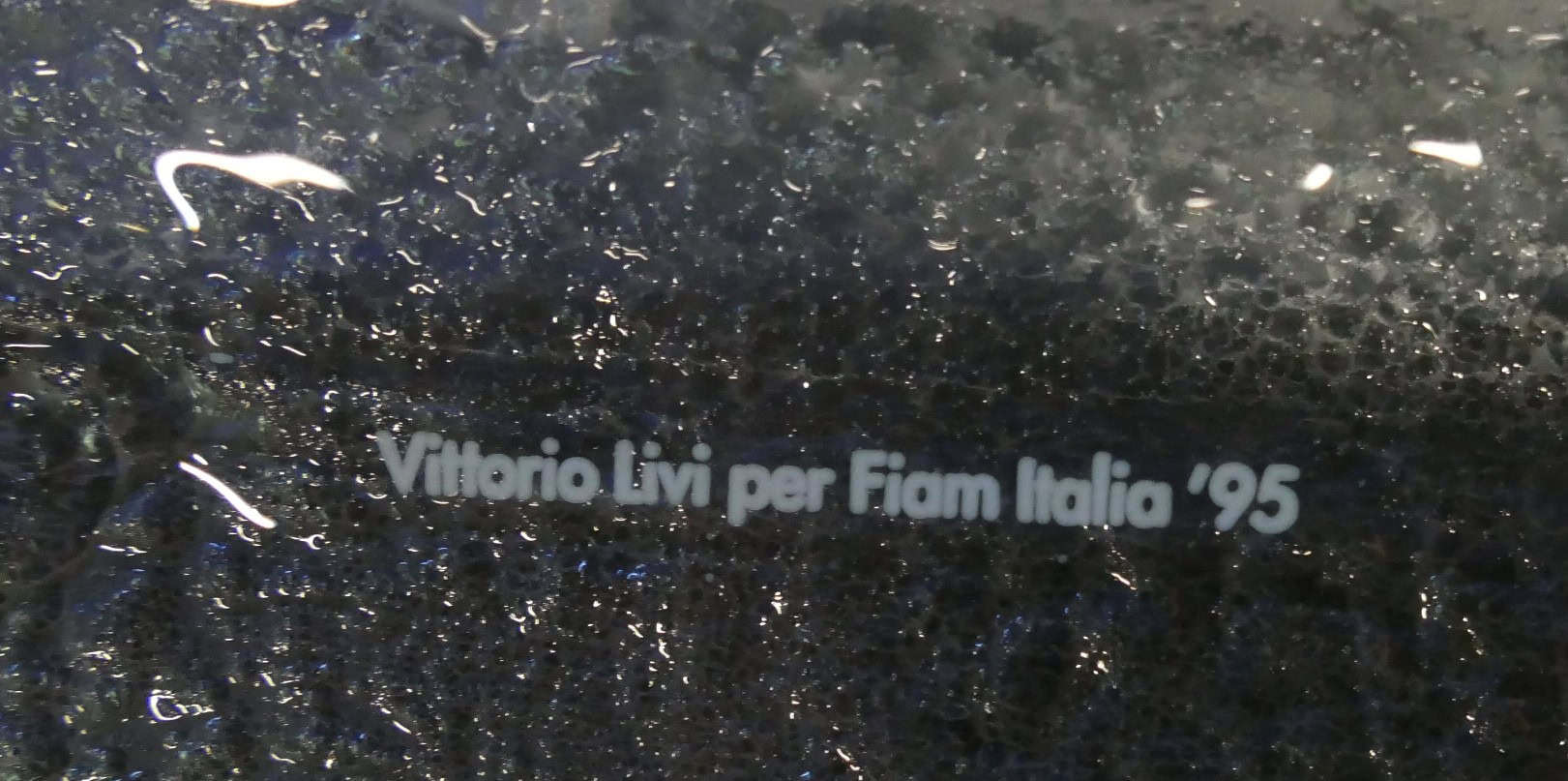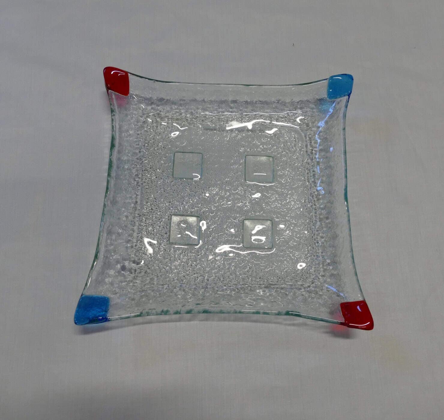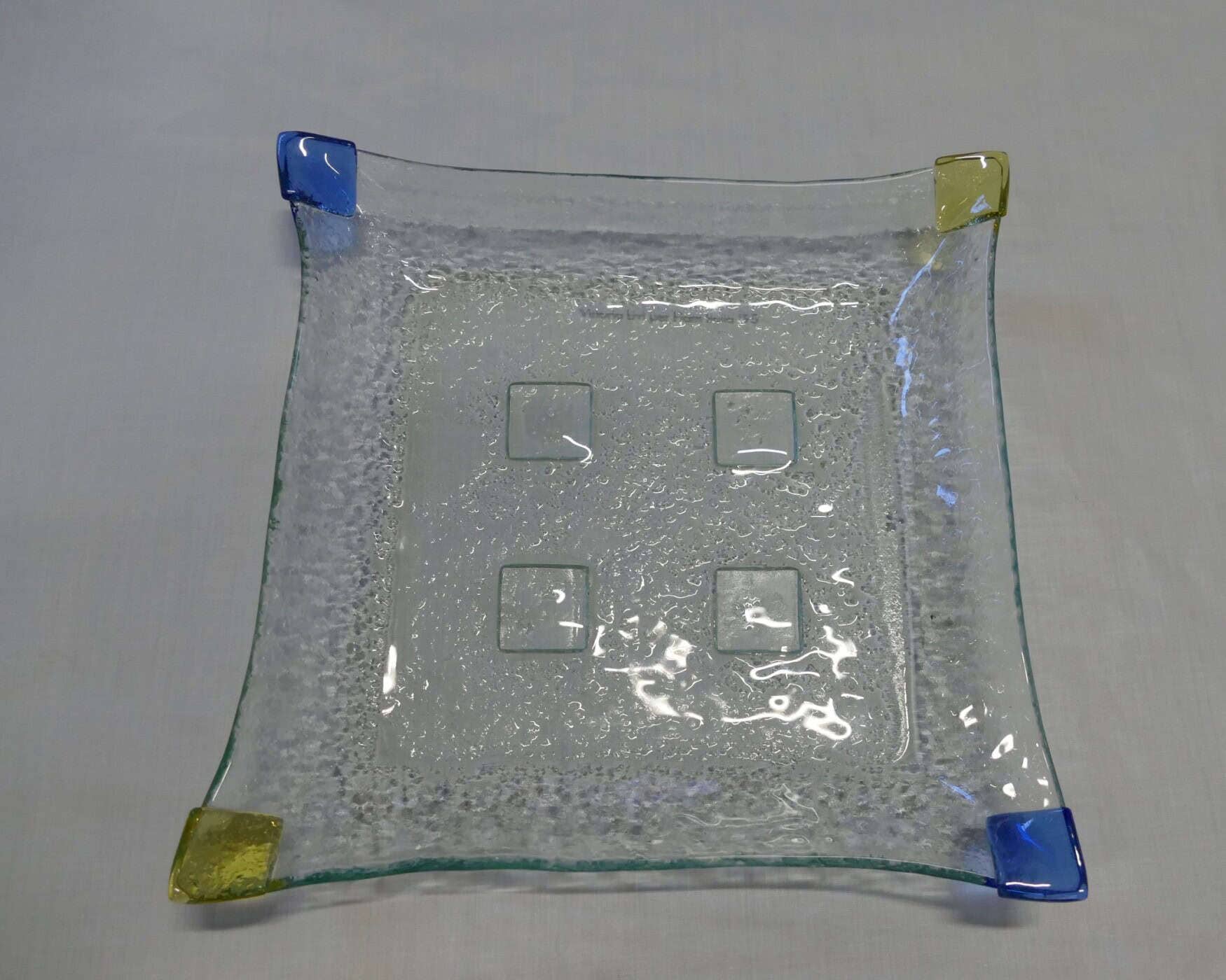 Set of two glass dishes by Vittorio Livi for FIAM Italia. Frosted glass with colored corners. In very good condition! Dimensions approx. 23 x 23 cm.