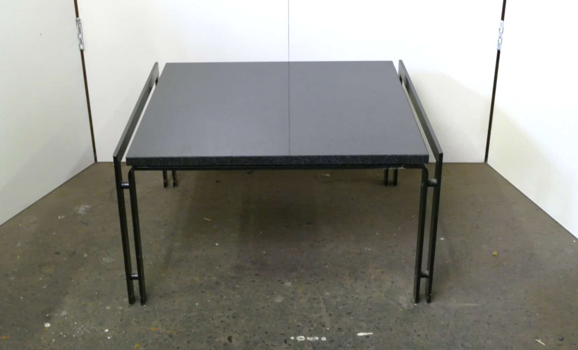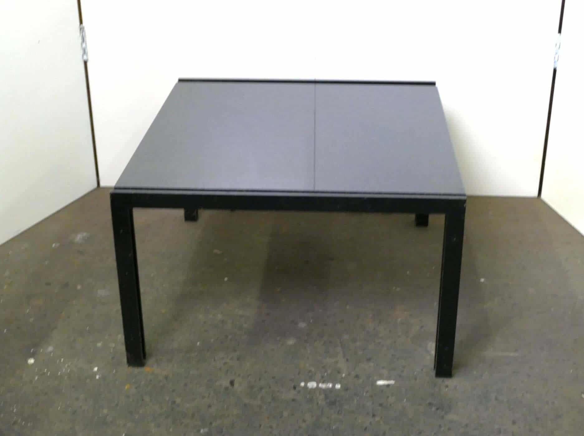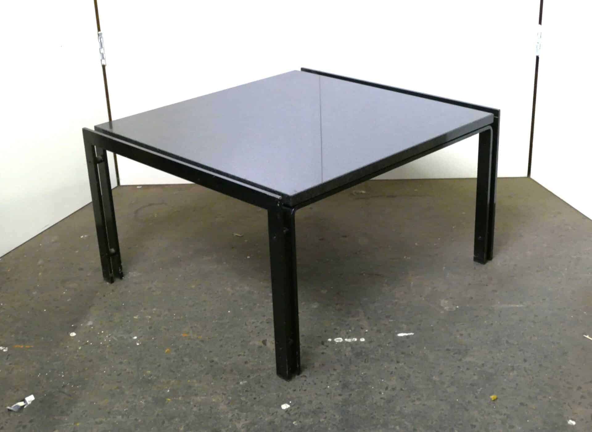 Metaform coffee table or side table with black lacquered steel base and a scratch-free dark gray granite top. Dimensions approx. 60 x 60, 35 cm high.