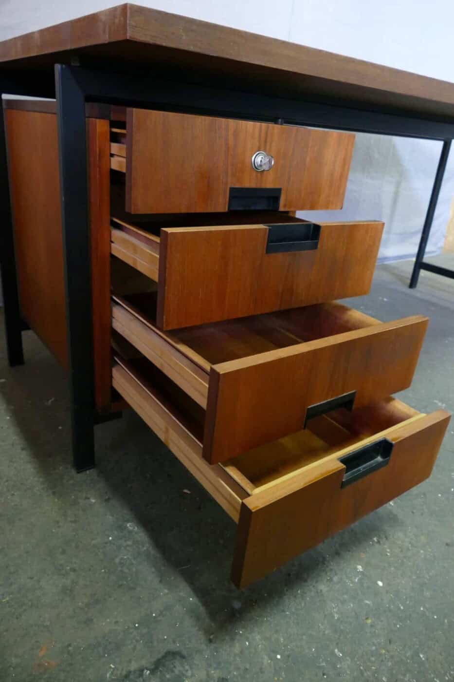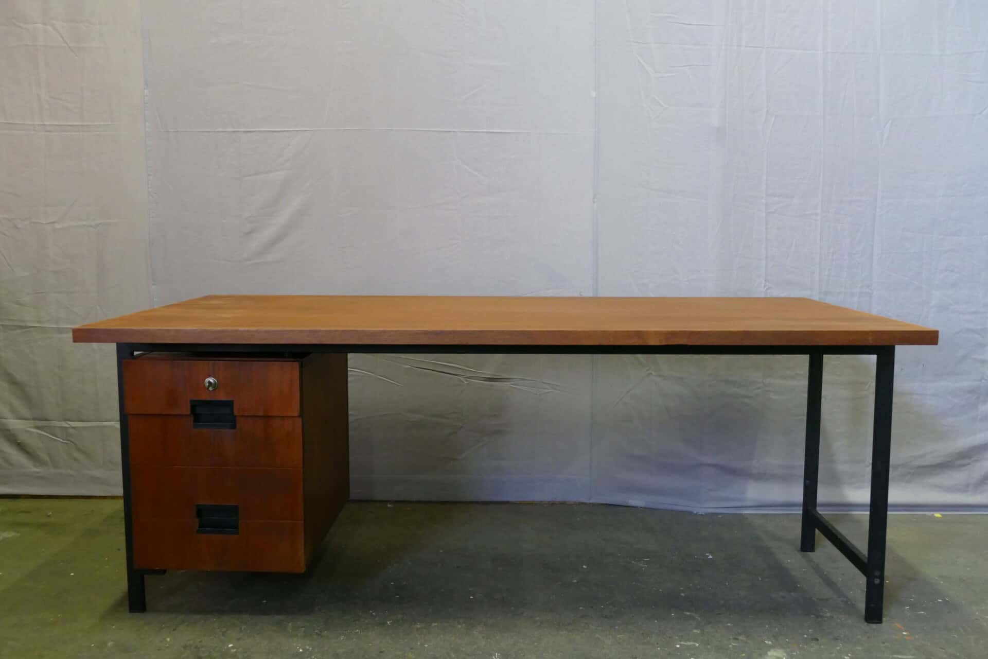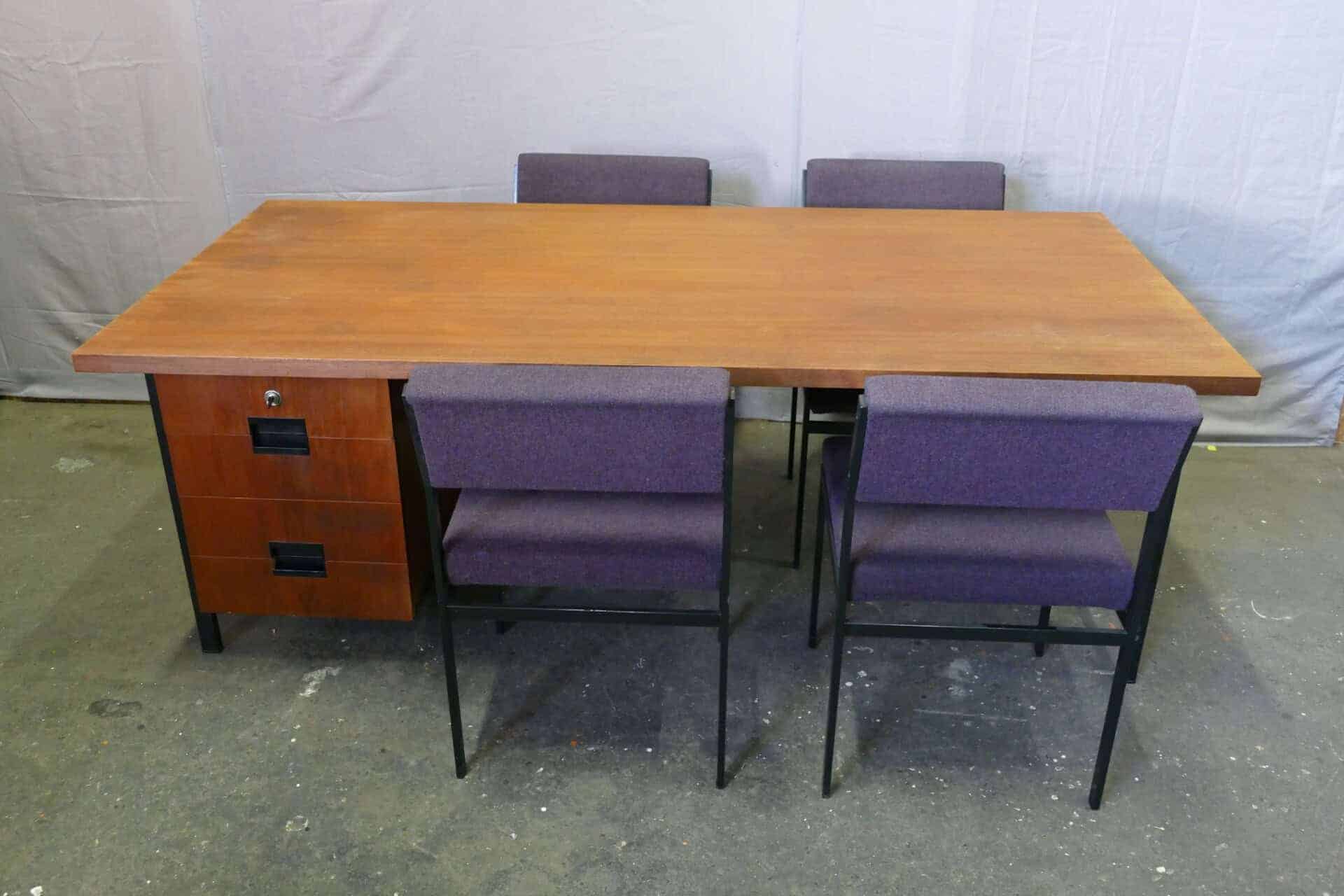 Pastoe EU03 writing desk, designed by Cees Braakman. It's part of the Japanese series. The top is 180 cm long and has only one base unit. This leaves plenty of free space, ideal as a worktable or, with four chairs around, as a dining table. The veneer is pristine, but the worktop does show some stains and rings.